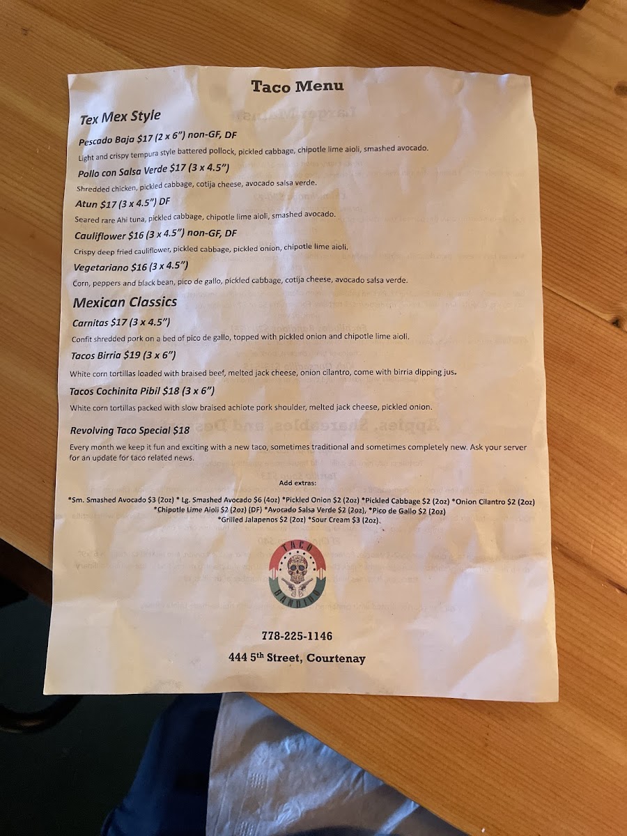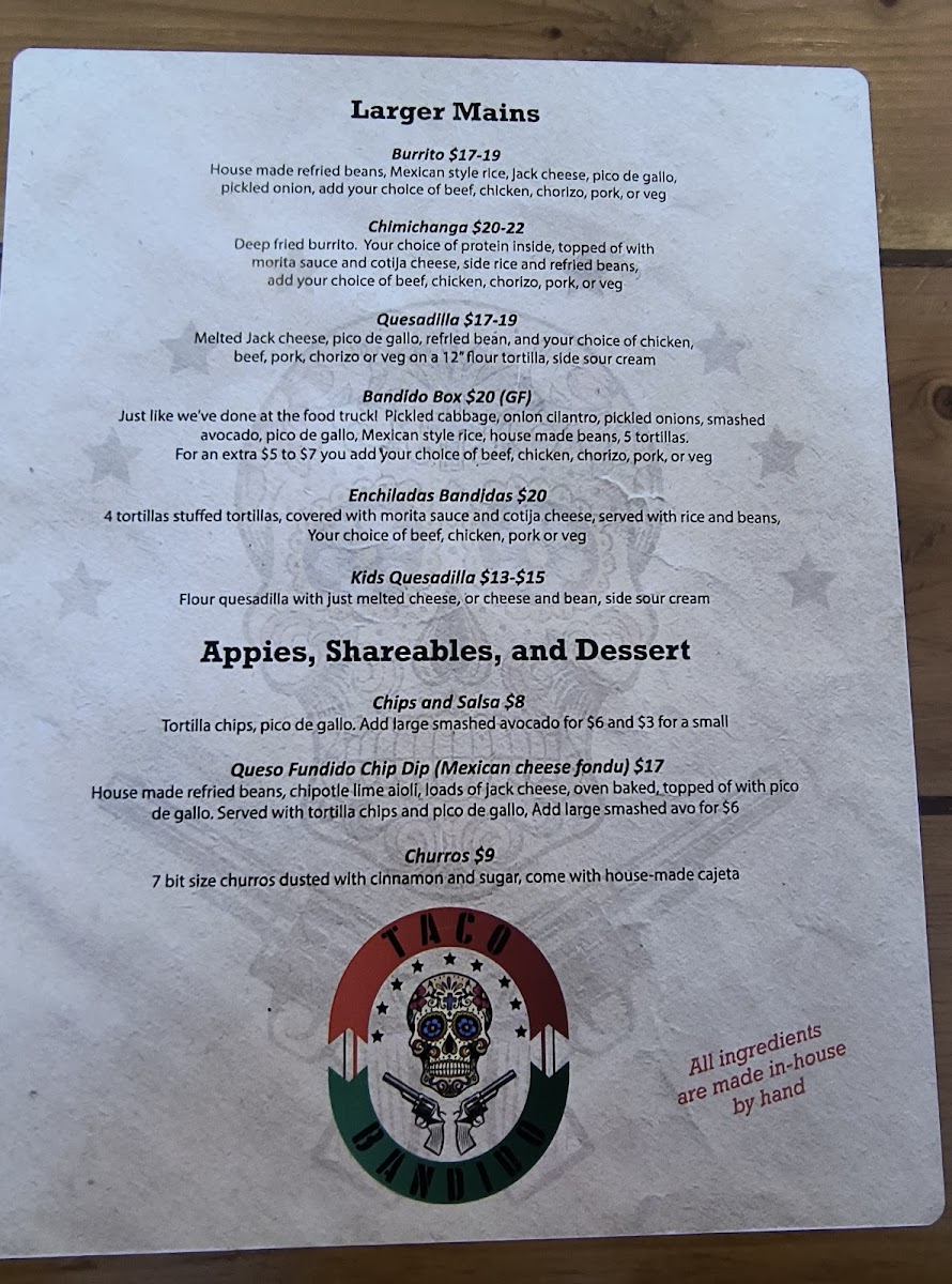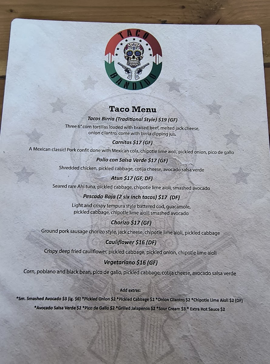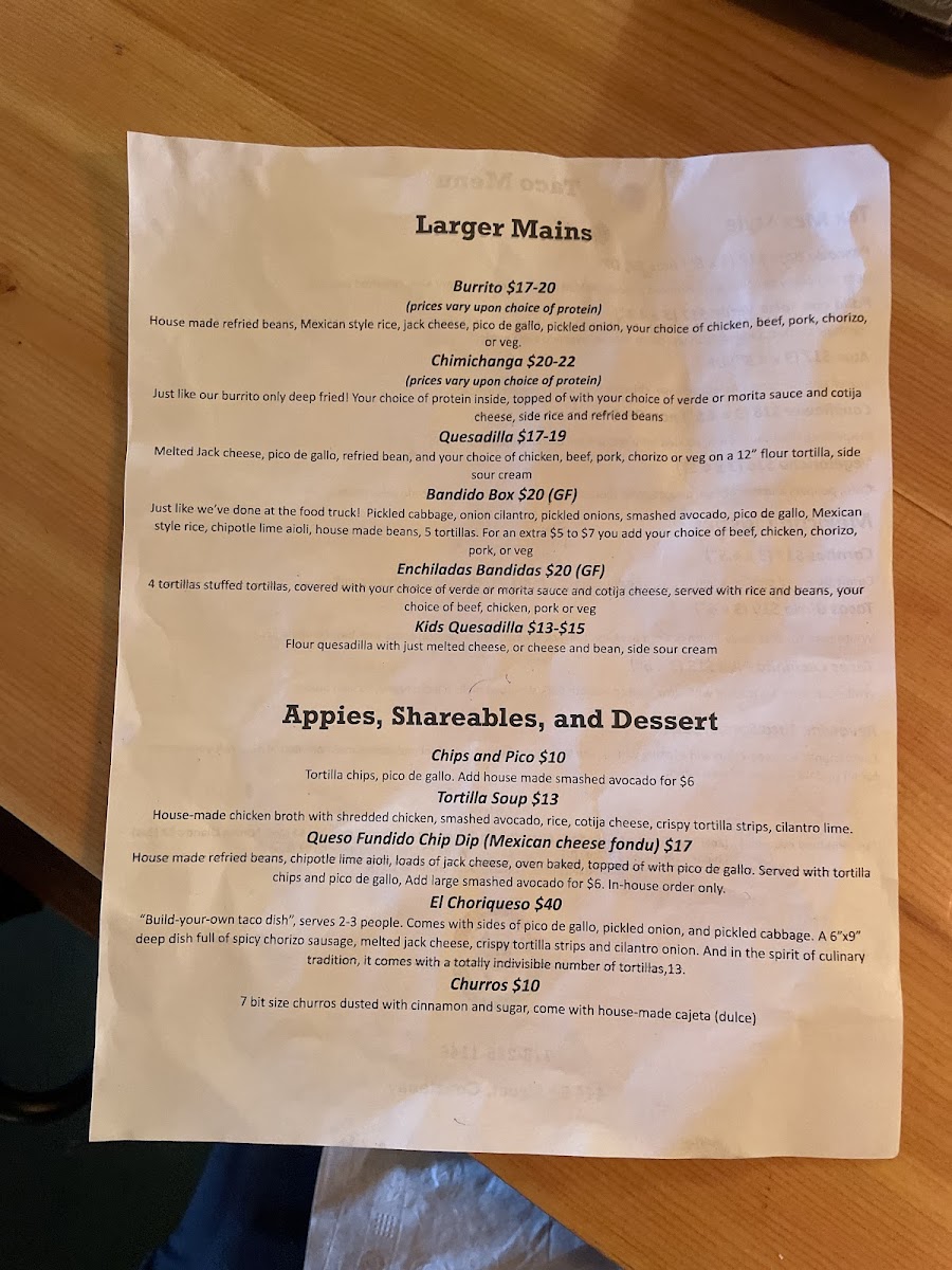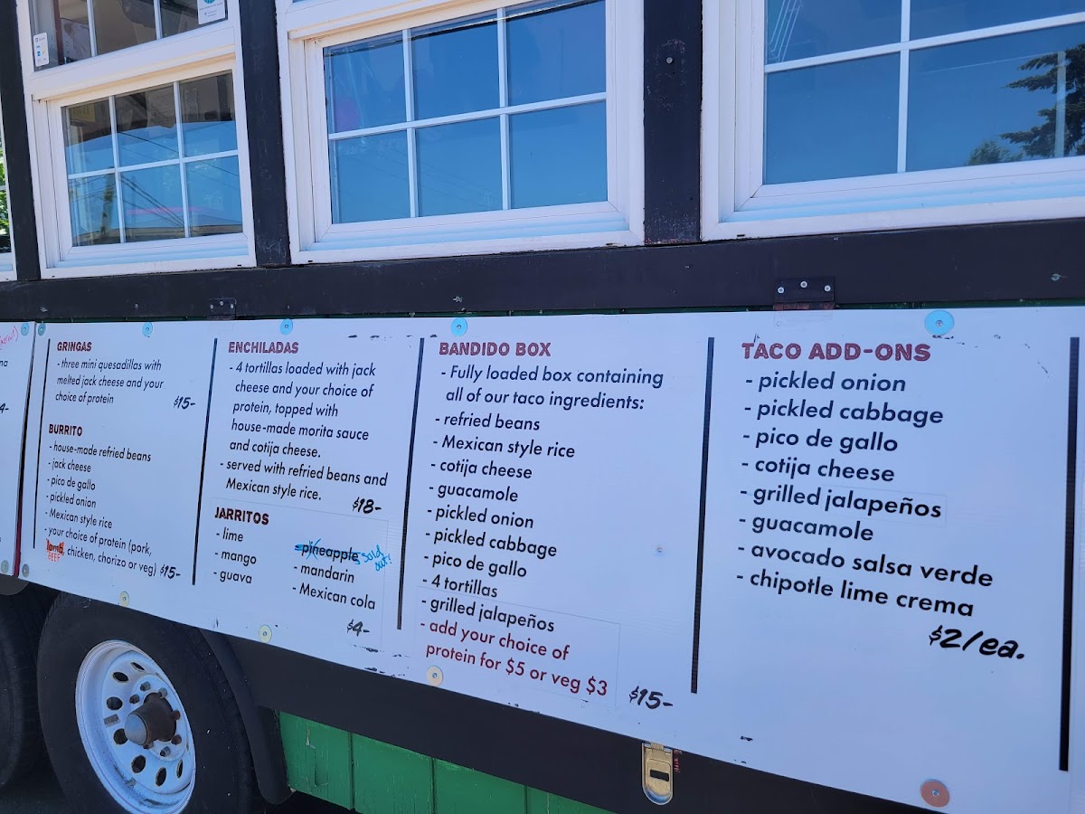 Taco Bandido Menu